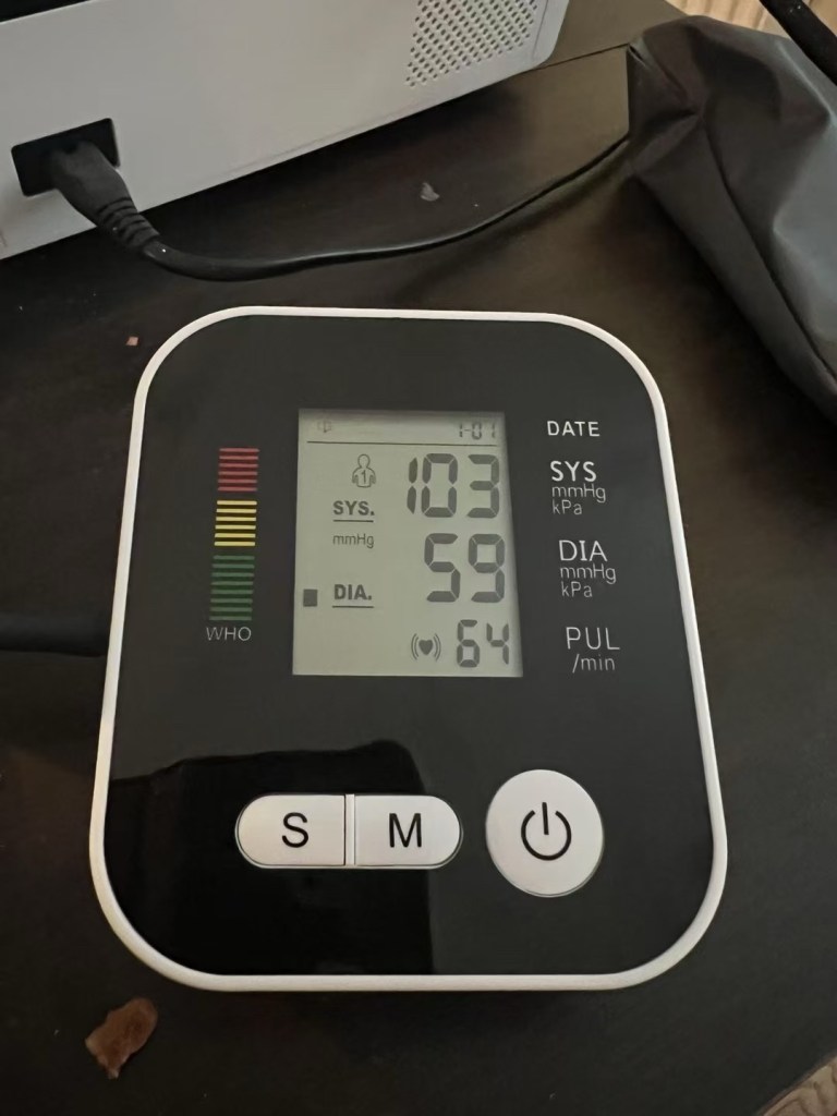 到了这把年纪,老友几个凑一起话题都快进到血压和睡眠问题。常年身体健康的刘太居然也高压超标,被社区医院要求在家自测一周后复查,每天早晚测四次,填表做记录。买来血压计(上次买这东西还是送给我妈),我也顺便测了一下,高压103,低压59,心率64,低得不能再低了。刘太则无论高压还是心率都踩线,再次咬碎牙根说要减肥。明天起再度吃减肥餐,于是今晚又出去吃了碗牛肉面。