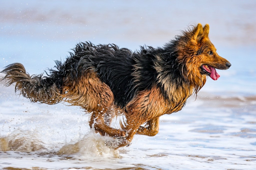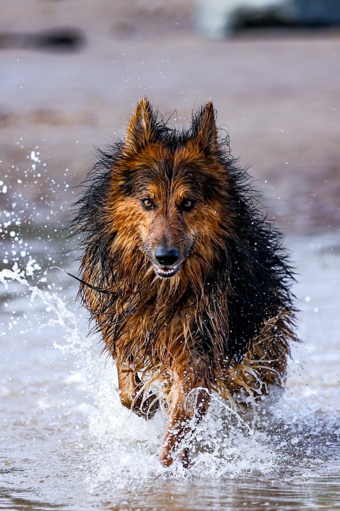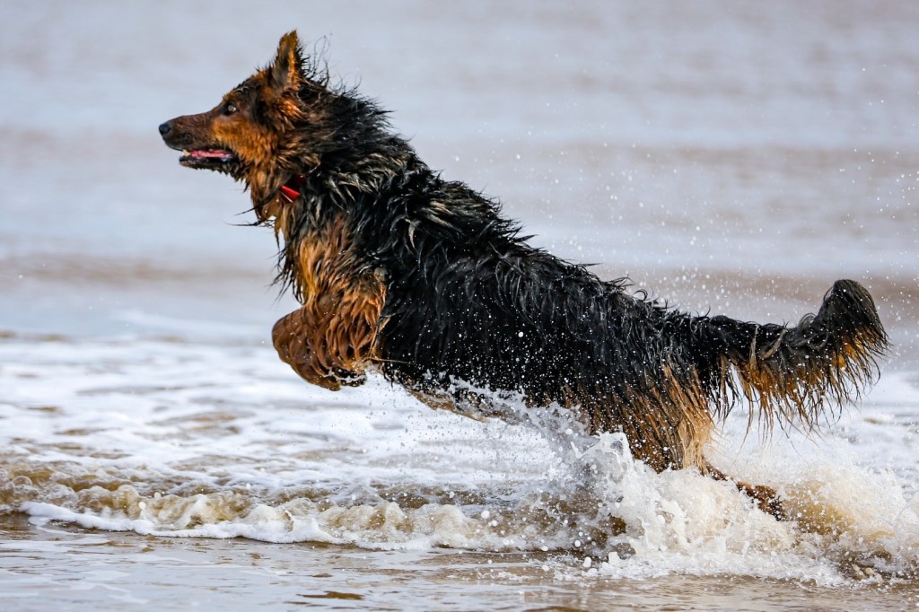 虽然䖔在家时一副人畜无害的表象,但它生性凶狠好斗,领地意识极强,体型壮硕,杀伤力惊人,跟任何狗正面对上都极易引发恶性事件,它在海滩上玩耍时需要方圆百米都没有其他生物。Withernsea 的海滩被堤坝分割成数百米宽的“格子”,大型犬可以在各自的区域内自由奔跑并且避免与其他的狗不期而遇,便成为我们海边度假的最佳选择。