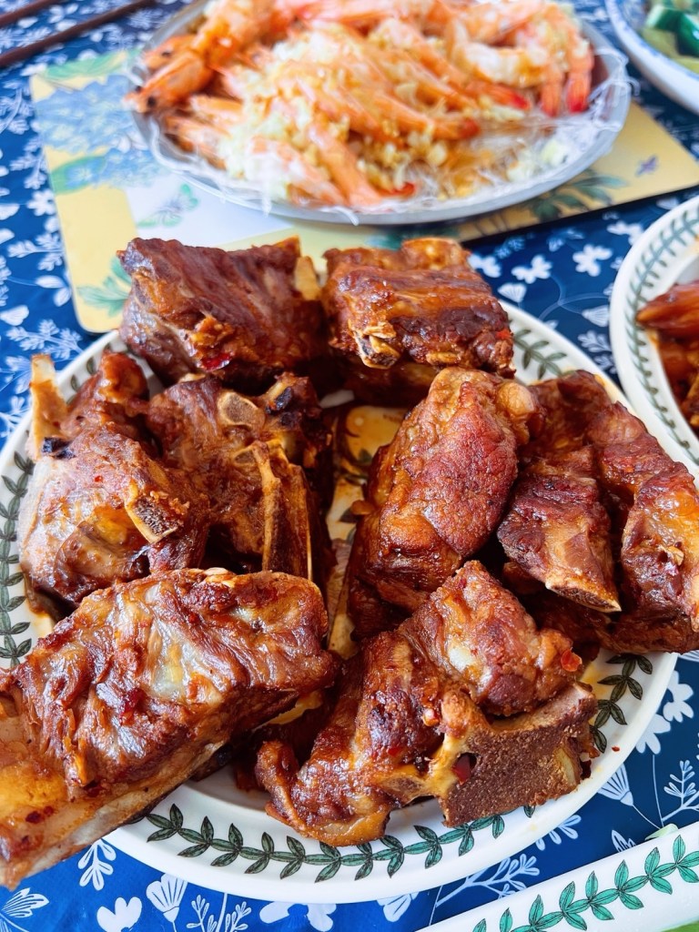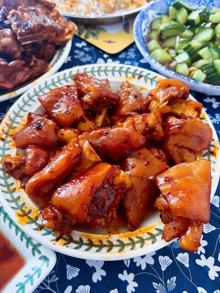 曼城唐人街蓝鲸超市的猪脚收拾得很干净,猪骨也很便宜。为了满足刘太的中国胃,今天特地做了酱酱骨、香辣猪蹄。原本这两斤猪骨是买回来喂狗的,结果全进了我们的肚子。䖔坐在餐桌上看着我们津津有味地啃骨头,一脸的着急,“你们家还有王法吗?”