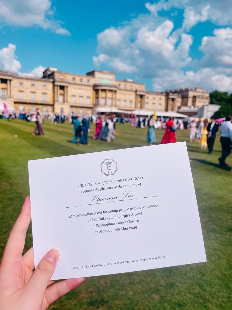 本届爱丁堡公爵奖的金奖获得者庆典于今天在白金汉宫举行,由爱丁堡公爵(现任国王的弟弟)亲自接见。五年的辛勤努力、数百小时的义工服务、两百公里的徒步越野、两百公里的木舟漂流、一百多小时的体育锻炼、数百小时的技能训练,一周的野外生存训练。五年前刚开始参加铜奖训练时芊大小姐也哭天抹泪地不要再去受罪,今天笑容满面自信十足地与爱丁堡公爵本人面对面地问候交流。女校本届学生仅有四人获得金奖,很多孩子因各种原因未能坚持下来。
