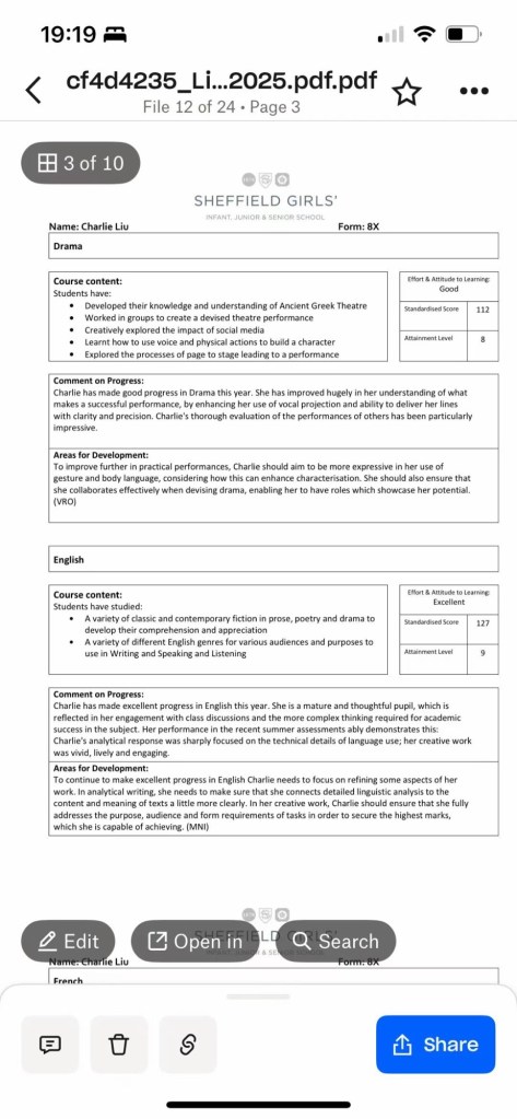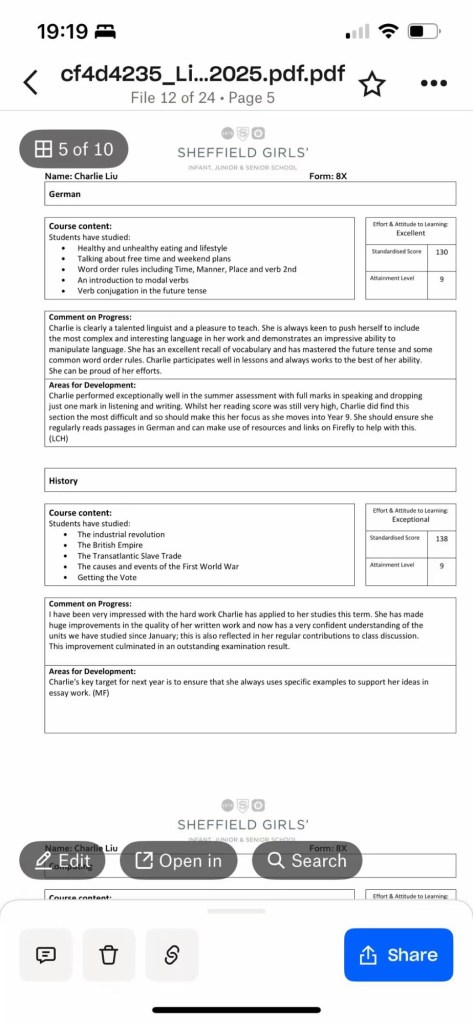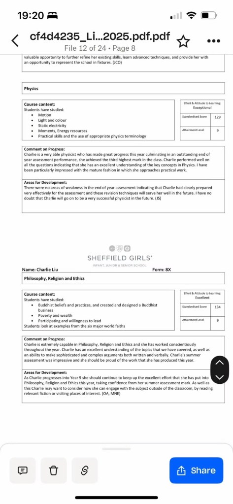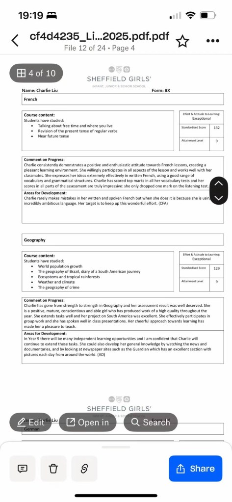 小甜甜好得像朵花似的初二期末考试成绩出来了。英语、法语、德语、拉丁语、数学、物理、化学、生物、历史、地理、美术、音乐、哲学、计算机14门主课全部都是最高分9分,只有戏剧和烹饪这两门副课8分。别看平时大大咧咧,考试时还是非常认真的。