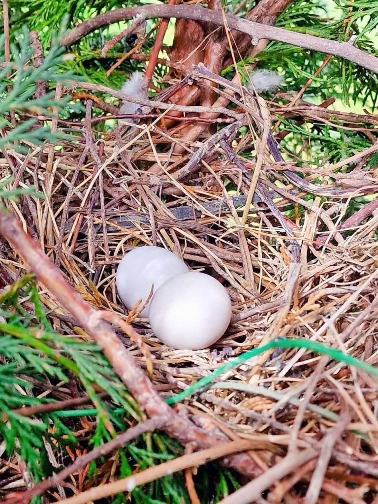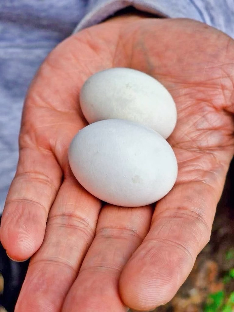 自然界没有产科。年轻的鸟妈妈没能孵化出她的两个孩子,最终不得不弃孵。Cherie爬上树掏了鸟蛋,鸽子蛋很小,只有大号鸡蛋四分之一左右。拿着手电仔细照了照,确信里面没有胎死蛋中的小鸟。就是不确定还能不能煮来吃。
