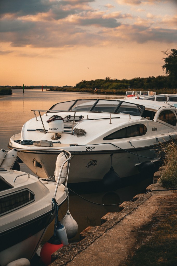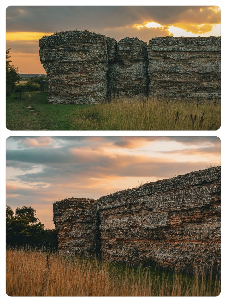 从度假屋沿河道步行十分钟左右即到Burgh Castle古罗马要塞,这里是观日落的最佳去处。河畔一侧停泊着大大小小的游艇,掌灯时分驾船游玩的访客们大多都要登岸觅食。商业繁华的船坞虽然设施齐全,但泊位不易,且要收取泊费。很多游客图方便往往选择夜间停靠在河道边。等闲了我也来此租艘游艇,把船泊在禽鸟栖息的水域中央,在暮霭下,坐甲板上,吃着火锅,哼着小曲,看“落霞与孤鹜齐飞,秋水共长天一色”。