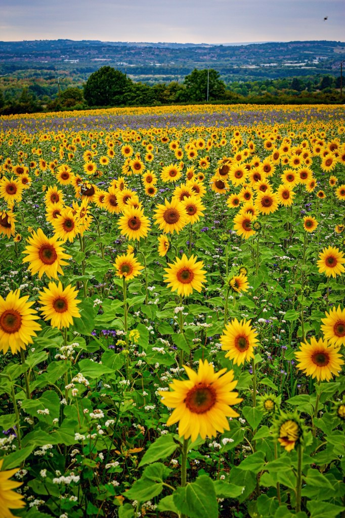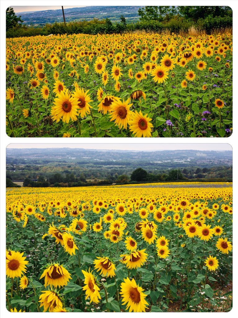 去年的油菜花地今年改种向日葵🌻。漫山遍野金灿灿圆滚滚的花盘,看着很是可爱。田间夹杂着紫色的山花,花间飞舞着忙碌的蜜蜂🐝,站山顶远眺,视野开阔,心旷神怡。有兴趣来此拍照打卡的,可以把车停在Cherry Tree Road, Sheffield S26 5LL