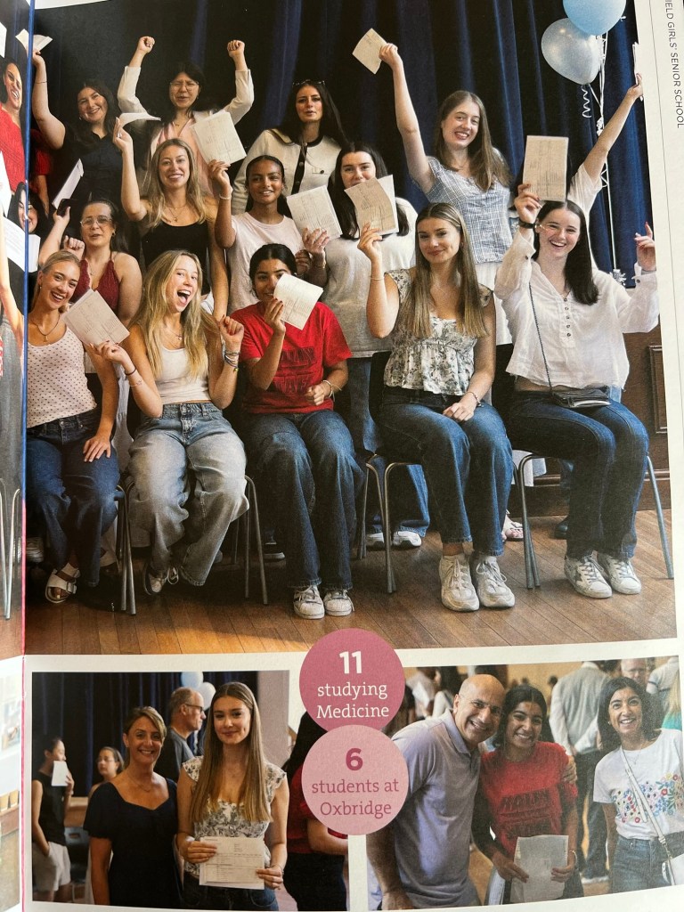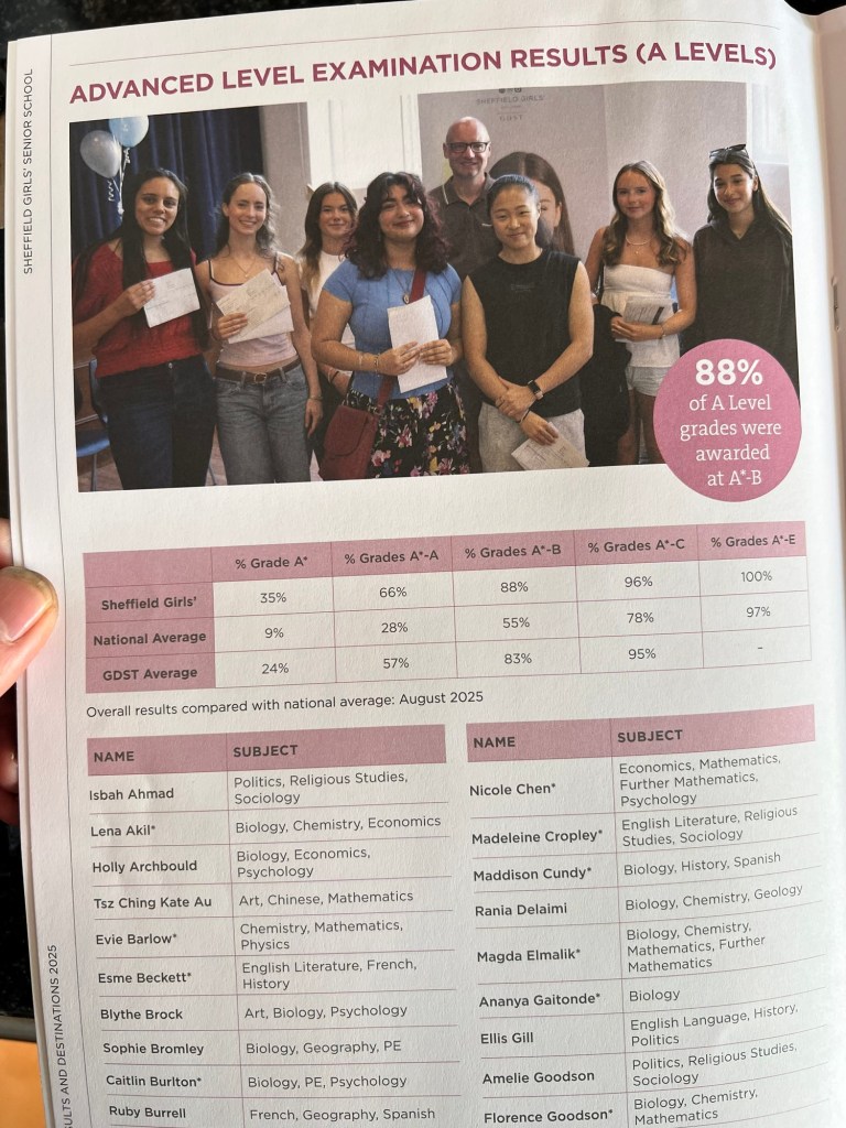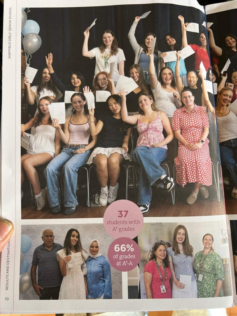 谢菲尔德私立女中今年的高考统计册出来了。这一届仅有73名女生,考出了建校以来成绩最佳的一次(之一)。73名学生考出了6个牛津剑桥、11个医学院和5个法学院。由于年初工党政府对私校近乎疯狂的打压与征税,有不少私校因生源骤减而无以为继,成绩优异的私校便从这些倒闭的私校分得了一部分生源,暂缓了自身的财务压力。精英教育与大众教育原本是可以和谐共处相辅相成的,却被一些别有用心的政客当作挑动群众、制造对立、激化矛盾的工具。